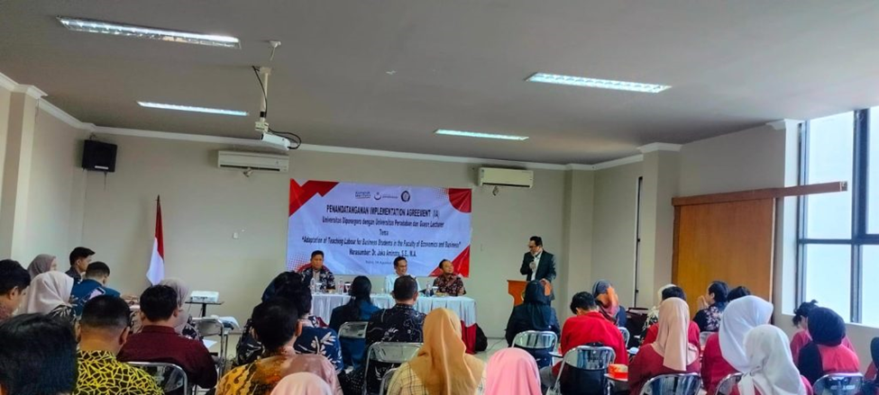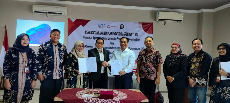 Kerja sama antara Universitas Diponegoro dengan Fakultas EKonomika dan Bisnis Universitas Peradaban telah terlaksana pada tanggal 14 Agustus 2024, bertempat di Ruang 201 Gedung A Universitas Peradaban. Kerja sama dalam bentuk Implementation Agreement (IA) dan Guest Lecture mengangkat topik “Adaptation of Teaching Labour for Business Student in the Faculty of Economics and Business”. Penandatanganan IA dengan Universitas Diponegoro terkait tri dharma perguruan tinggi, dilanjutkan guest lecture yang membahas seputar teaching labour model, dan pemberdayaan SDM pesisir. Dari Universitas Diponegoro diwakili oleh Dekan FEB, Dr. Jaka Aminata, S.E., M.A., sementara dari Universitas Peradaban diwakili Kaprodi Akuntansi, Metiya Fatikhatur Rizqiyah, S.E., M.Ak. dan Kaprodi Manajemen, Sarah Dien Hawa, S.E., M.Si.